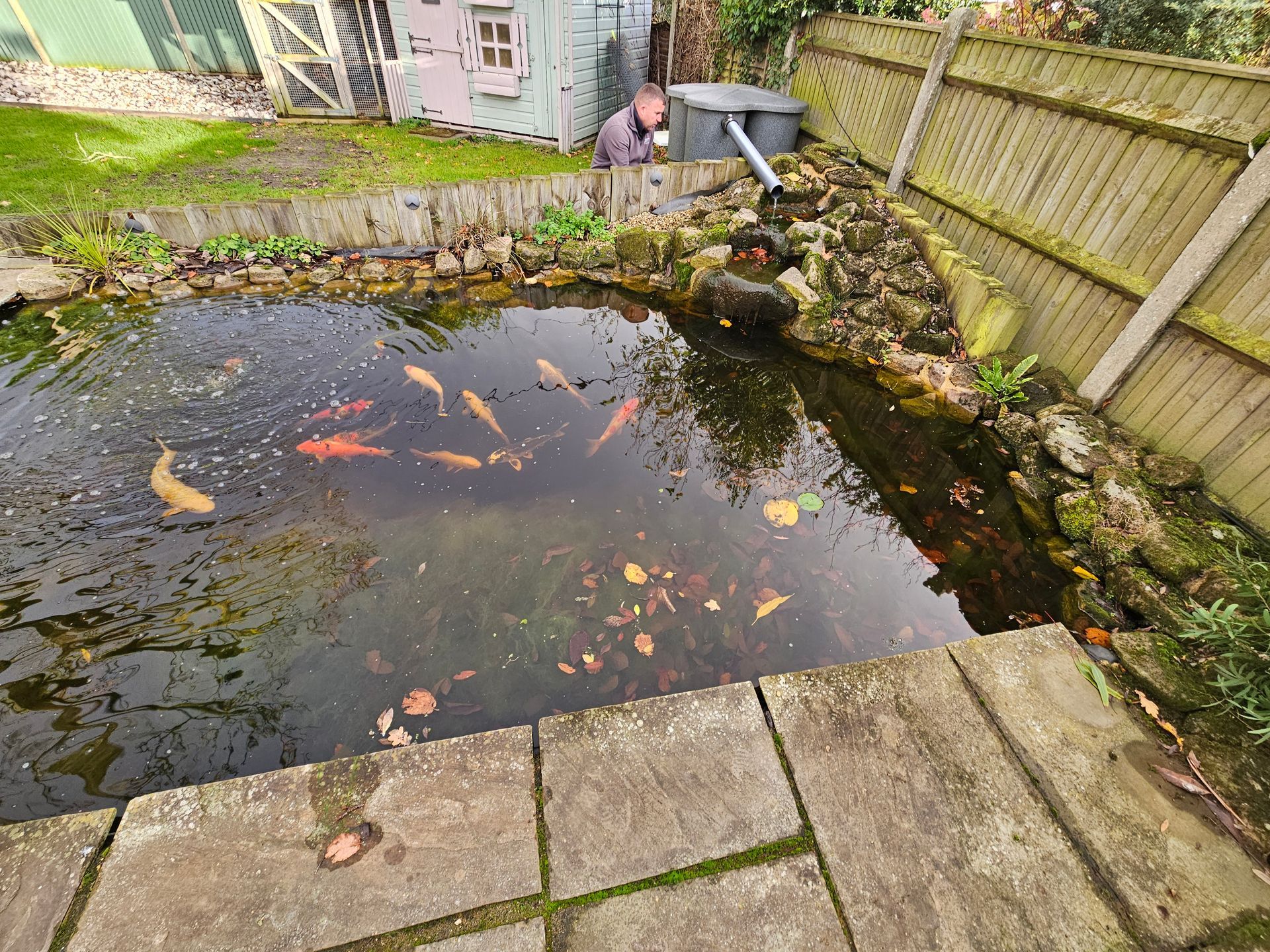 The customer had ongoing issues with leaf debris and blanket weed plaguing water quality. As part of the installation, we incorporated a skimmer and Iongen system to combat both respectively. We completed the refurbishment using sandstone rock creating this stunning water feature for the Koi to enjoy.